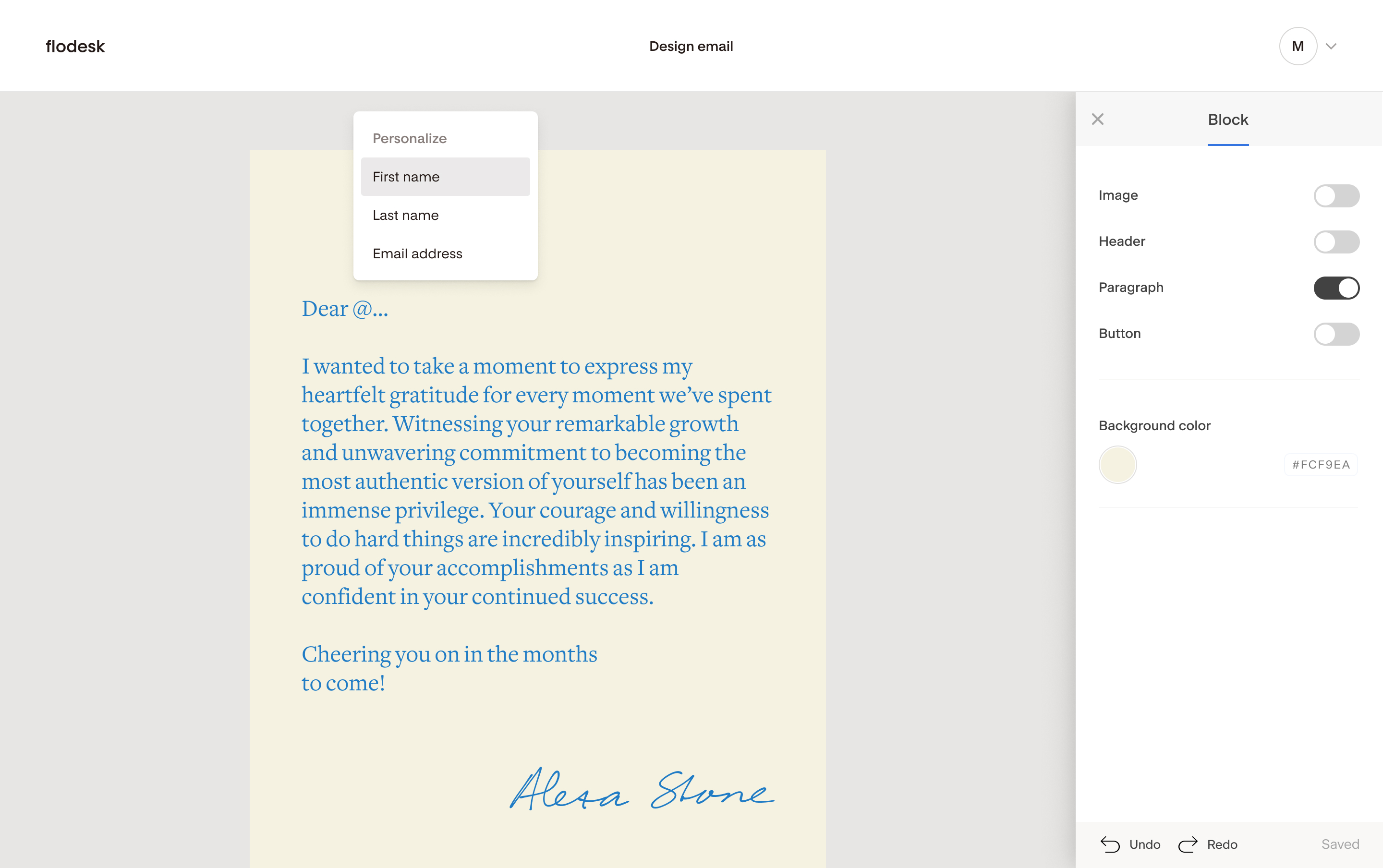 The interface guides you toward good design choices. Even if you are not a designer, your emails will feel aligned and elevated because the system was built to support you.